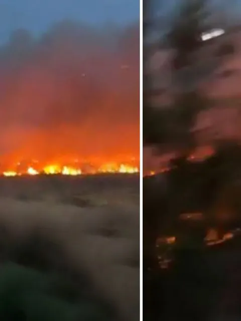 Como puede verse en el video, las llamas que llegaban justo al borde la ruta, estaban afectando una zona de campo.