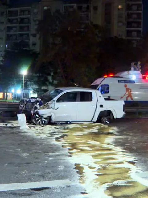 Un video de una cámara de seguridad mostró el momento en que la camioneta perdió el control y en cuestión de segundo impactó contra la luminaria, contra el guardarraíl y contra la estructura que sostiene los carteles.