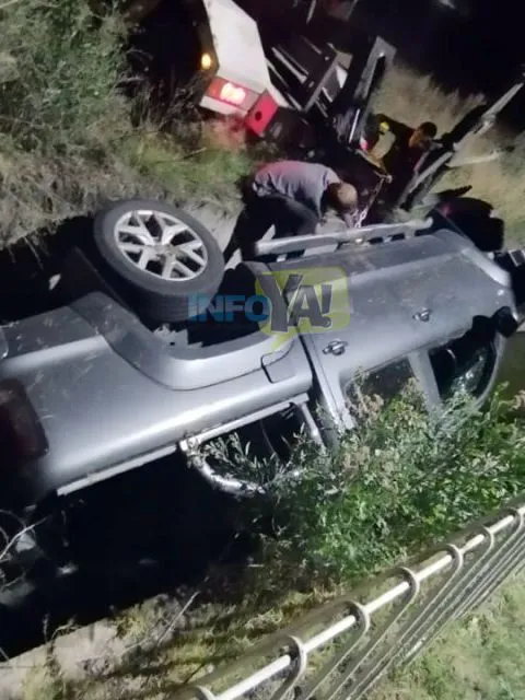 La camioneta, como se ve en las imágenes, quedó sobre el costado del acompañante y perfectamente alineada con el canal, sufriendo daños de consideración.