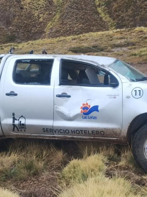 Una camioneta Toyota Hilux del complejo invernal de Las Leñas volcó este viernes alrededor de las 17.30 en la ruta provincial 222.