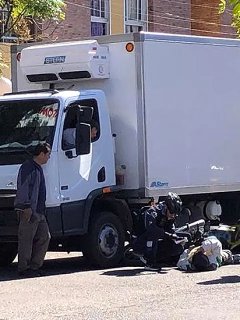 Según la información policial, la motociclista circulaba por la avenida hacia el sur al intentar esquivar al camión Mercedes Benz que se encontraba estacionado en doble fila colisionó con un automóvil Nissan que circulaba en la misma dirección.