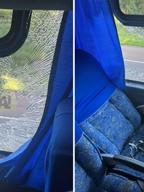 Consideró que "es una piedra que la tienen que haber largado con una gomera por el tamaño y por lo fuerte que impactó", aunque ningún pasajero alcanzó a ver quién fue.