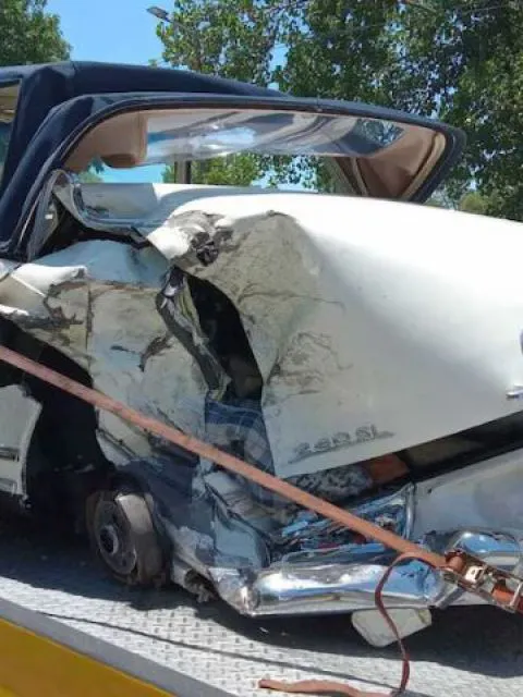 Un tormentoso día vivió el dueño de un Mercedes-Benz 230 SL Pagoda este sábado en la Autopista Panamericana. El lujoso auto de colección que había sacado ese mismo día del taller perdió una rueda en medio de la vía y provocó un choque múltiple que destruyó el coche.