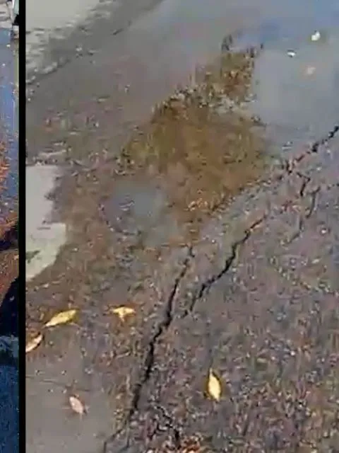 Vecinos reclaman por una abundante pérdida de agua y asfalto agrietado