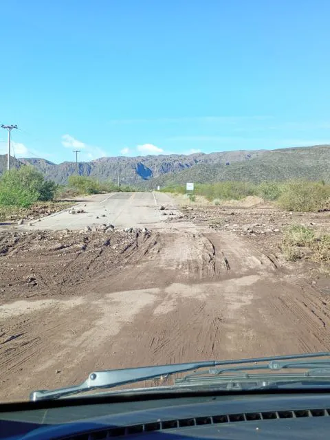 Recomiendan suma precaución a los automovilistas que quieran viajar hacia el paraje turístico por el estado del camino debido al desborde de agua y lodo desde los zanjones.