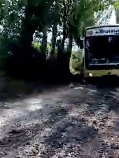 Video: Un colectivo se atascó en el barro en Calle Larga Vieja