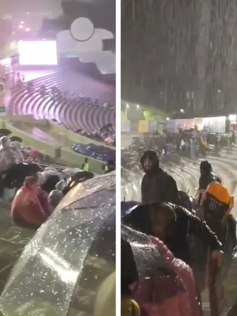 Videos: la lluvia sobre el teatro griego obligó a suspender el show de Abel Pintos